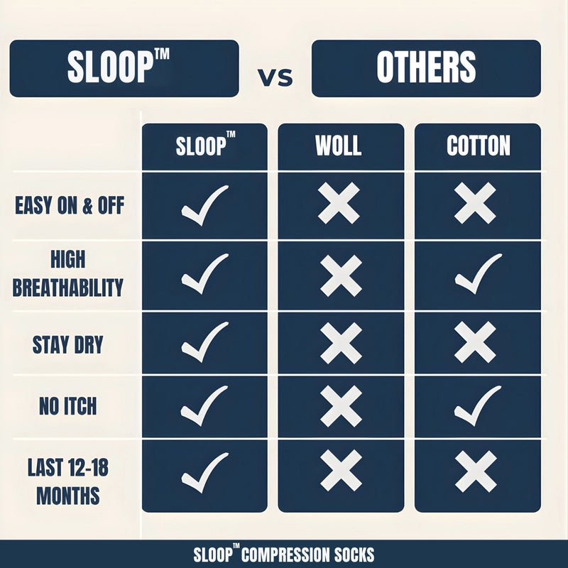 Sloopâ„¢ socks are engineered for 12+ hours of continuous comfort. Enjoy support from your morning stroll to evening relaxation, keeping your legs fresh and energized all day.